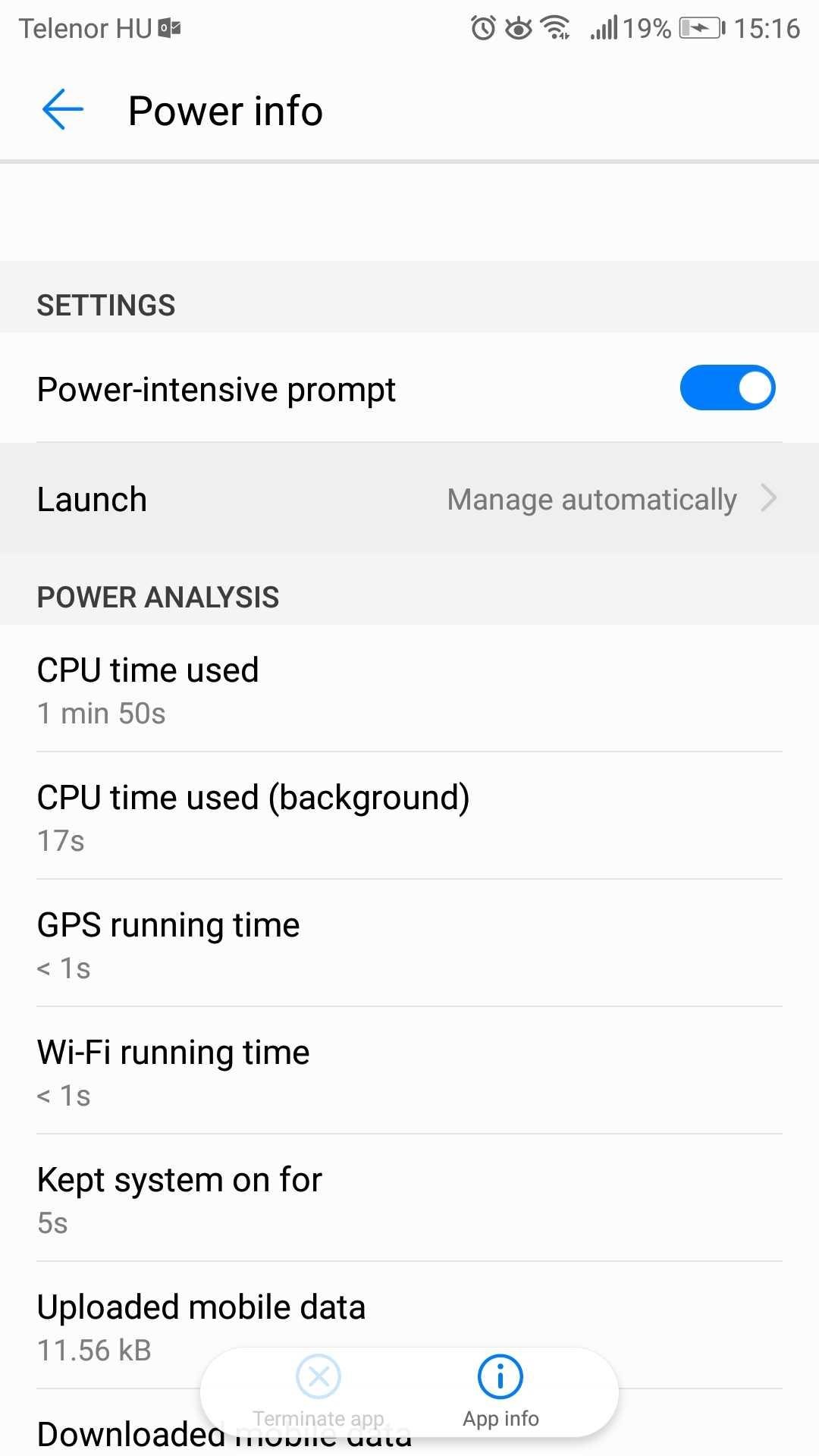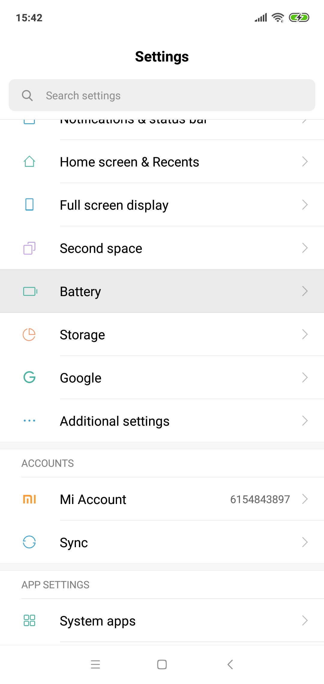 - Settings / Battery