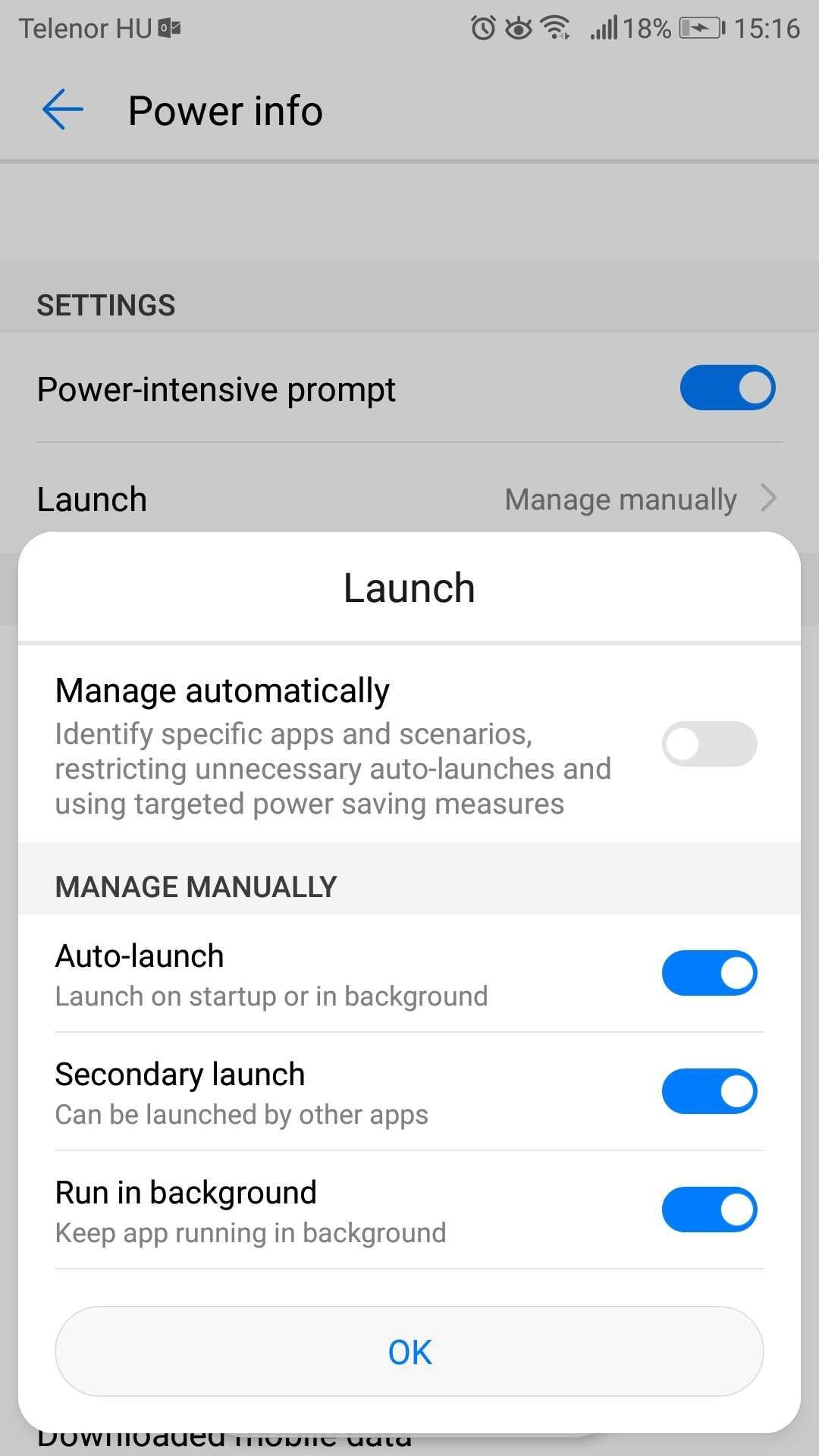 - Uncheck 'Manage automatically', and allow manual options as below