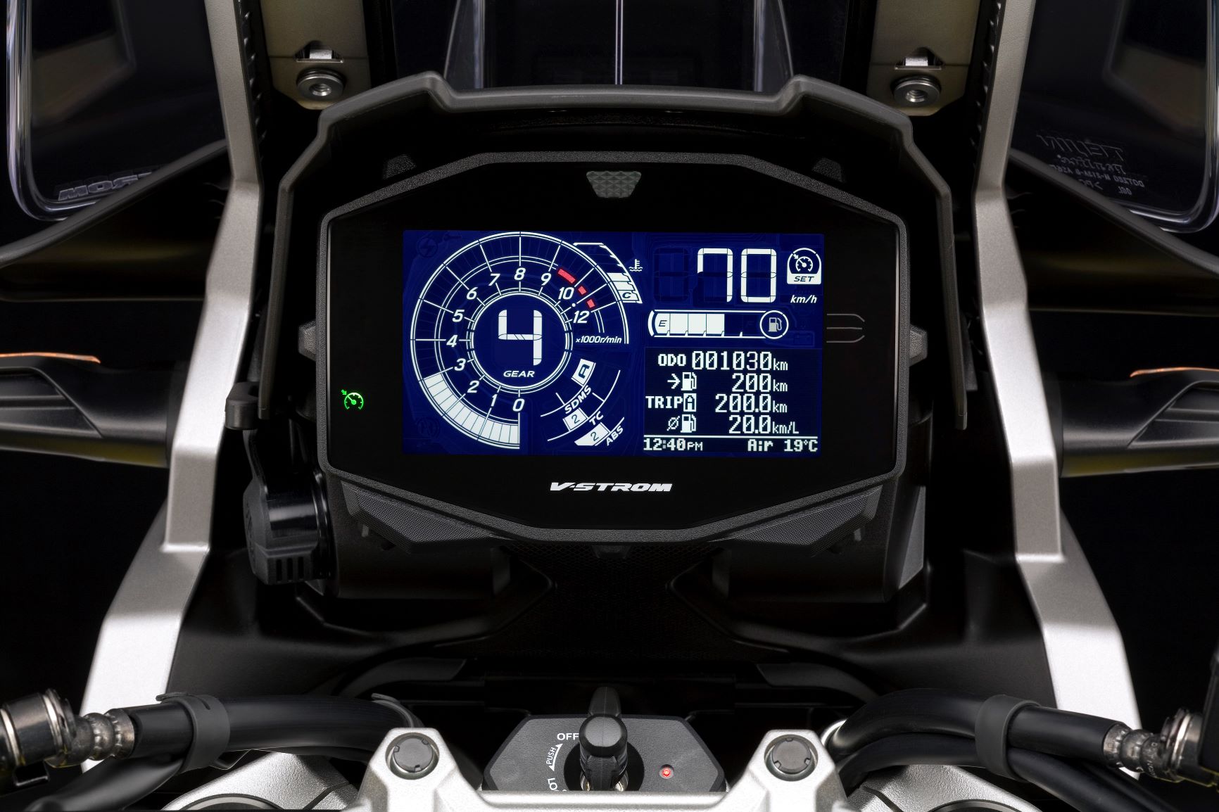 A többfunkciós LCD kijelző az összes szükséges információt tartalmazza. Letisztult és intuitív módon mutatja be a sebességet és fordulatszámot, valamint a sebességi fokozatot. Megjelenik a kilométer-számláló, a pillanatnyi üzemanyag-fogyasztás, átlagos üzemanyag-fogyasztás, megtehető távolság, üzemanyagszint-jelző, hűtőfolyadék-hőmérséklet kijelző, környezeti levegő hőmérsékleti kijelző, óra, feszültségmérő, SDMS mód, Traction control üzemmód, sebességtartó automatika, ABS üzemmód, dombtartás jelző, motor fordulatszámlámpa, irányjelző lámpa, távolsági fényjelző lámpa, ABS jelzőfény.