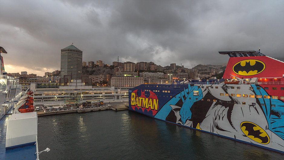 Genovába a tervezett idő előtt értünk, kb fél hétkor már a kikötő széléhez értünk. Az érdekes dolog viszont itt indult, mert meg kellett találni a kikötő bejáratát.