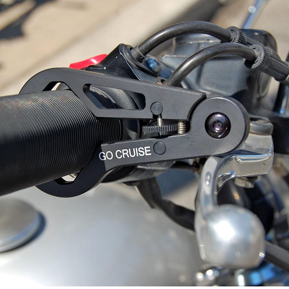 A Go Cruise a fenti két megoldáshoz hasonlóan faék egyszerűségű, de egy kicsit tetszetősebb megoldást, amit itt például 23 eurótól kínálnak. Egy egyszerű alumínium darabról van szó, aminek rögzíthető végét a gázkar markolatára kell felszerelni, majd miután elértük az utazó sebességet, a fékkarra tolni az alu pöcköt, hogy rögzítsük a gázt. Lassításkor tehát vissza kell hajtanunk a kart, mielőtt elkezdhetnénk fékezni, vagyis értékes másodperceket veszíthetünk, ami vészhelyzetben nem hangzik jól.