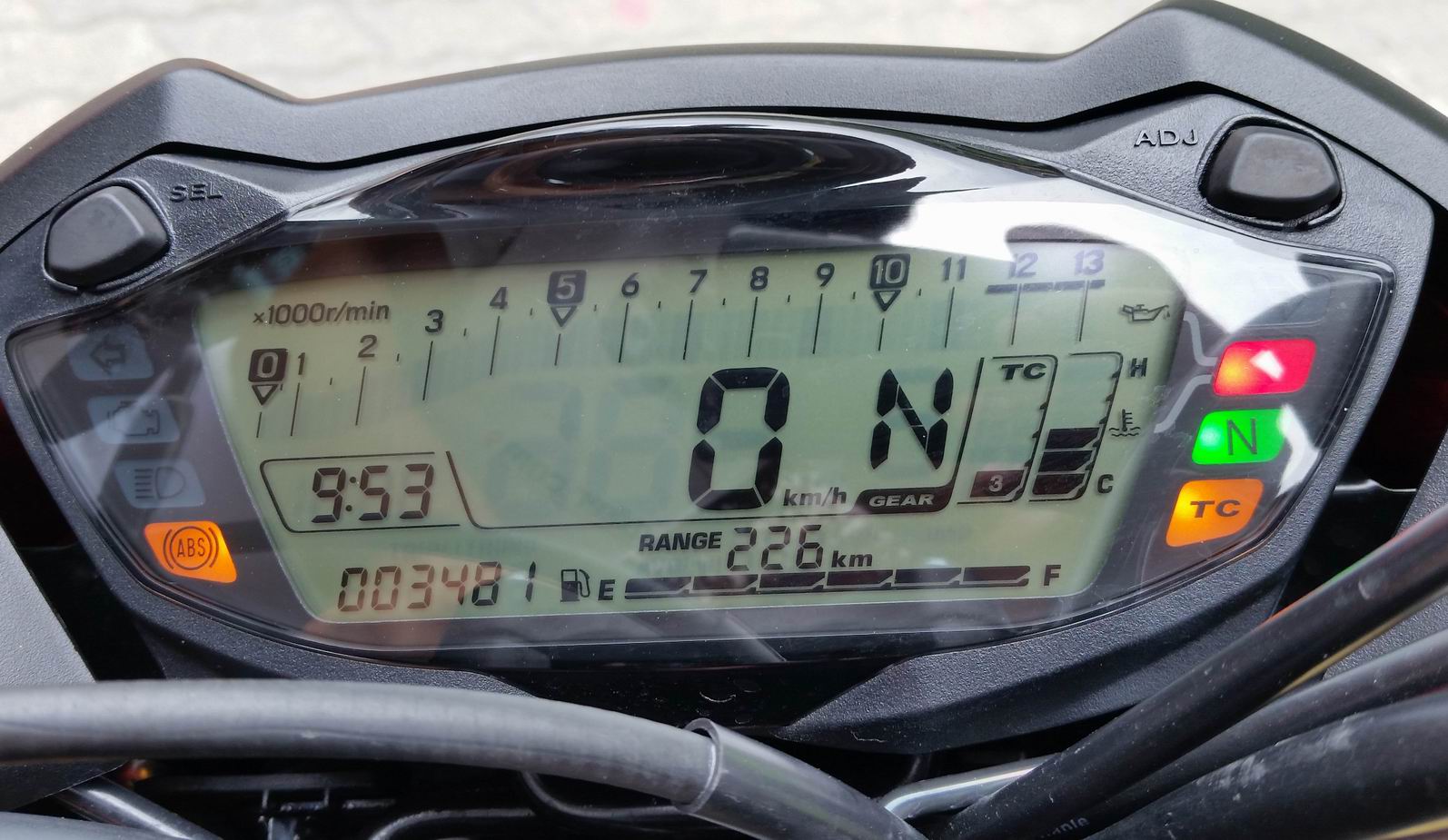 Befejezéséül a 6-os főutat választottuk, mely nemrég esett át egy nagyobb felújításon így ez a szakasz méltó befejezése volt a második tesztnapnak. A motor mind nagy sebességű, nagy ívű kanyarokban, mind kisebb ívekben is tökéletes élményt nyújtott számunkra, mondhatnánk, hogy egy kiegyensúlyozott ezres, kezes bárányt vezetünk. A fedélzeti műszer, teljes mértékben digitális, a felső tartományban látható a motor pillanatnyi fordulatszáma, a középső szakaszban jól láthatóan jelent meg a pillanatnyi sebességünk, illetve a megszokott TRIPA/TRIPB/ODO, a motor hűtőfolyadék hőfoka, a benzintank töltöttségi szintje, az ehhez kapcsolódó becsült megtehető kilométerek száma, illetve örömünkre a műszerfalon helyet kapott a pillanatnyi sebességi fokozat is, így nagy tempónál elkerülhető az a bizonyos nem létező hetedik sebességi fokozat keresgélése. Továbbá a motor az átlagfogyasztást is tudomásunkra juttatja, amely az erős ezres blokk ellenére is 5,2 – 5,8l/100km tartományban tudtunk tartani, pedig teszt túráink során nem az fogyasztás alacsony szinten tartása volt az elsődleges cél.