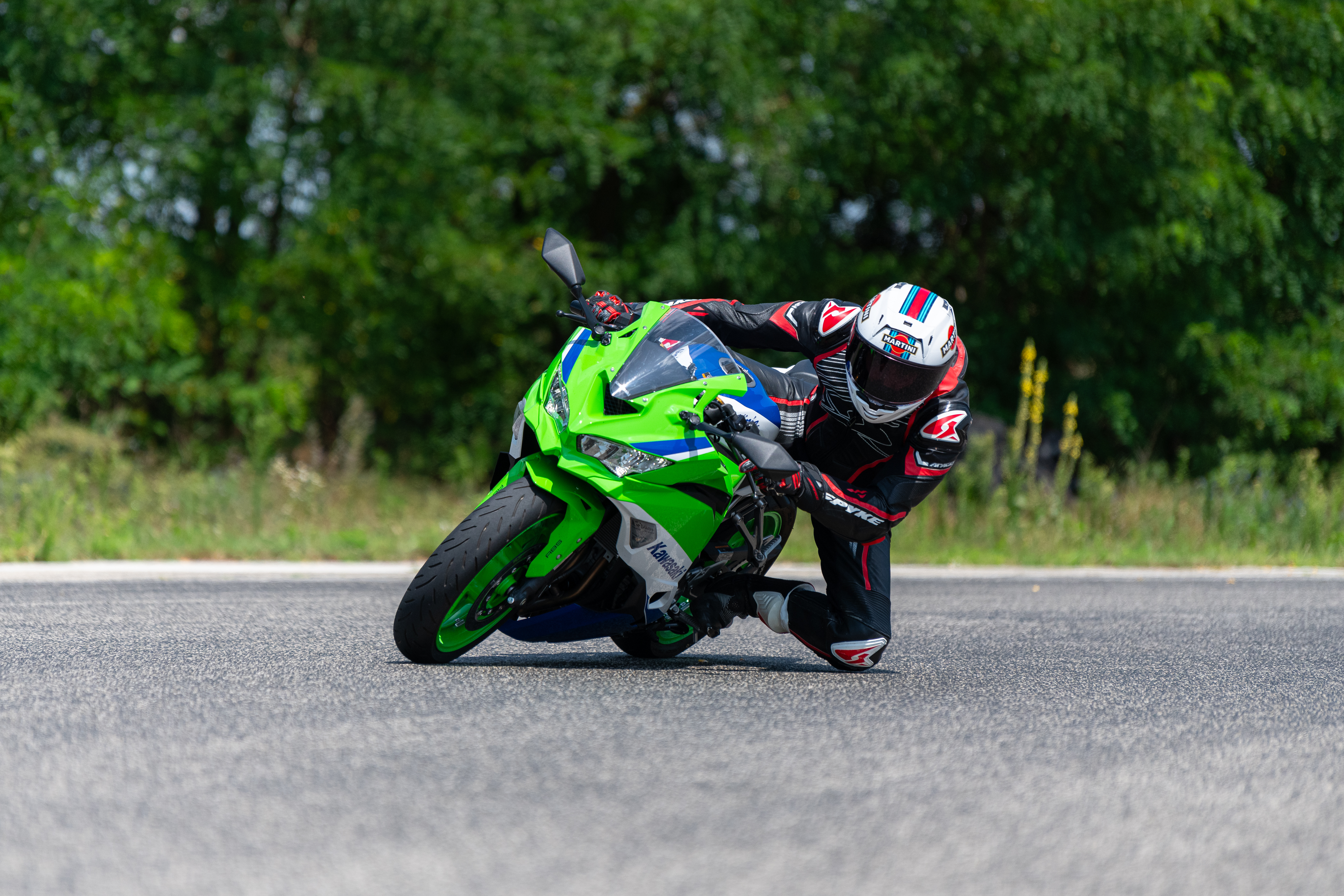 Ettől függetlenül a ZX-4RR ügyesen idézi meg a gyerekkoromban tomboló korszakot. A 75 lóerejével még inasba is teszi az egykori gépeket, a 16 ezerig forgó blokk pedig elmebaj. A szó jó és rossz értelmében egyaránt, mert egyfelől első pár alkalommal tényleg szórakoztató végigforgatni, de utána már tényleg azt érzi az ember, hogy megbolondul a folyamatos üvöltéstől, miközben a 36 Nm nyomaték nem üti ki a ház tetejét, a nagy hanghoz képest szerény a menés.