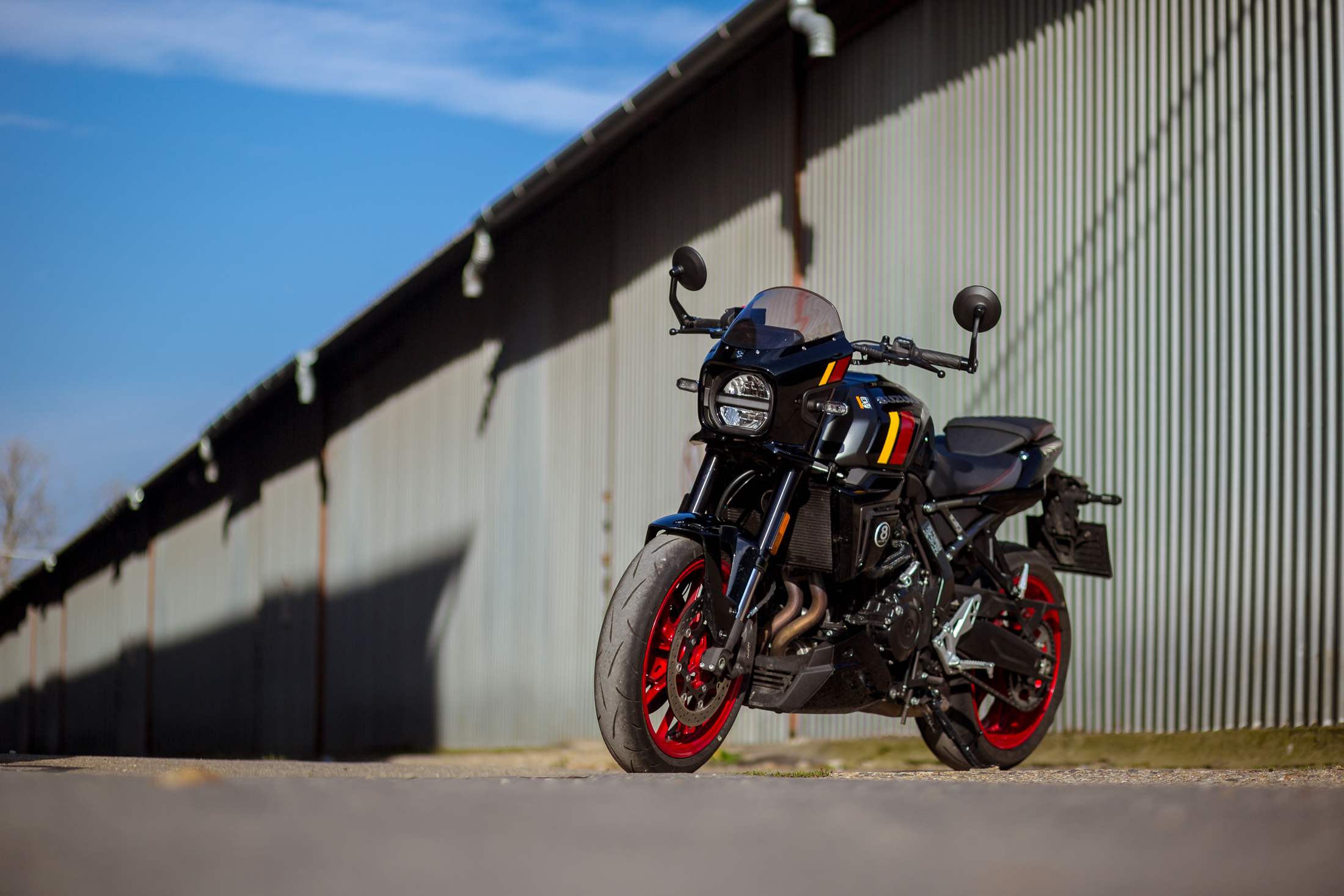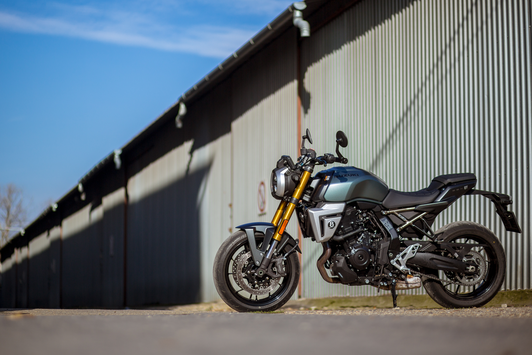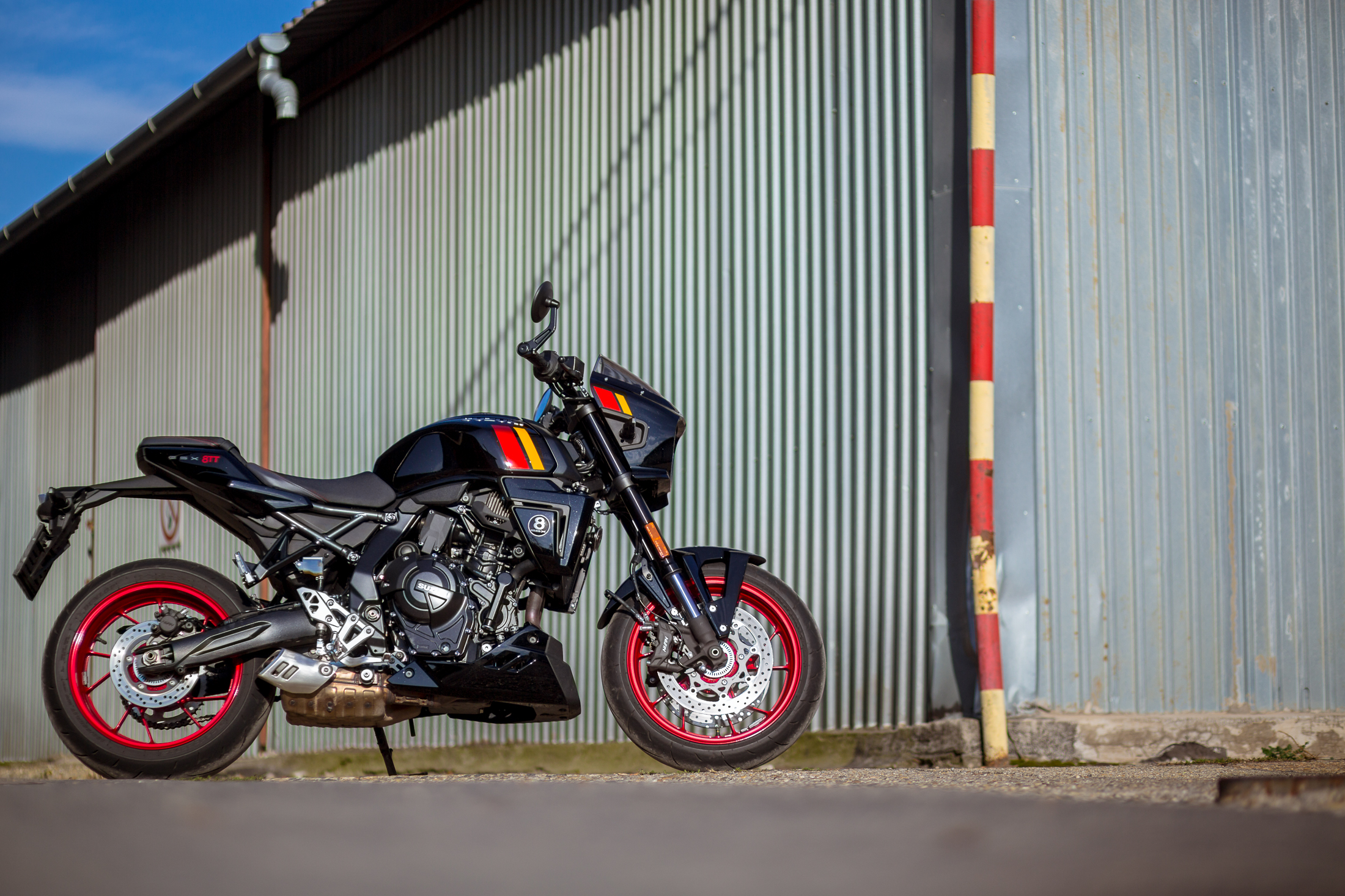 Így amikor először megláttam a GSX-8TT-t, nem véletlenül szaladt fel a pulzusom: igen, ezt vártam, ráadásul a japán motorgyártásnak egy olyan korszakát porolták le, amikor igazán menők voltak: a hetvenes évek végét és a nyolcvanas évek elejét, amikor kialakult a superbike, mint versenyműfaj. A superbike akkor még nem az idomos sportmotorokat jelentette, hanem az egyenes kormányos, veszettül erős, de még hitvány vázakon billegő gépeket, amiknek a tengeren túlon őrületes versenysorozatot szenteltek, a gyártók pedig meglátták a lehetőséget: a vasárnapi győzelmet hétfőn eladásra lehet váltani.