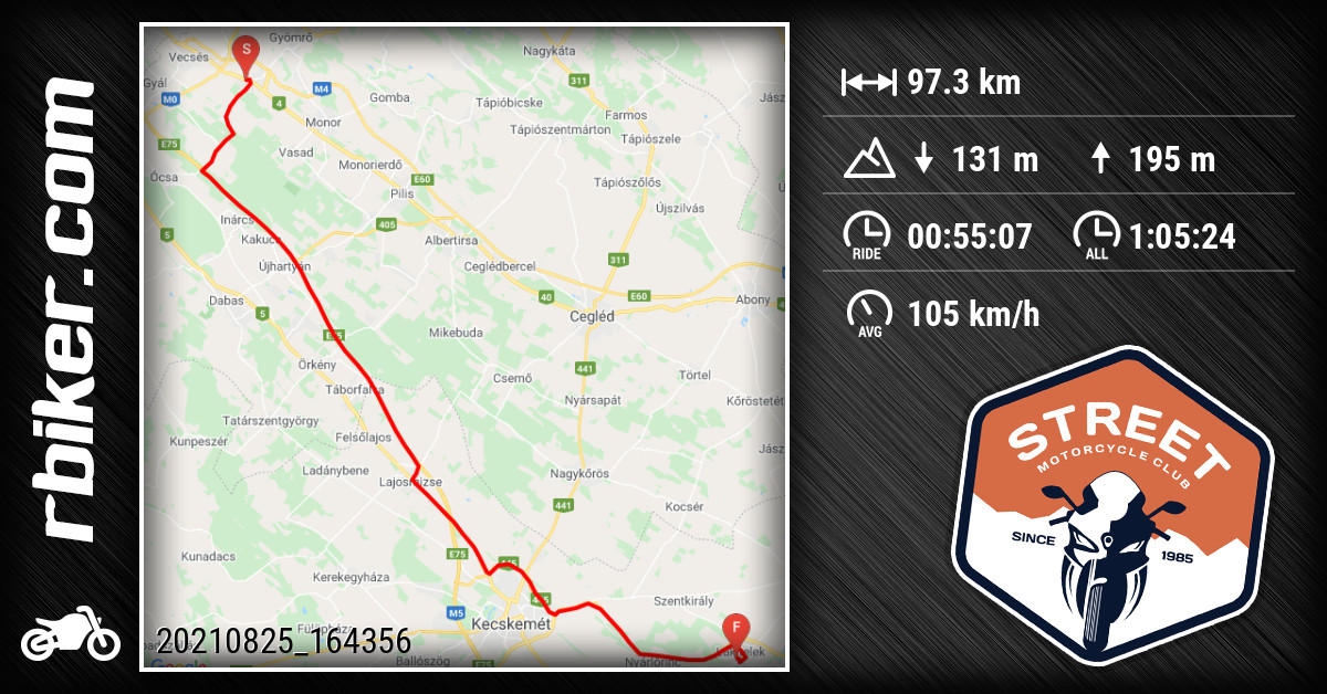 Átlagsebesség: 105 km/h